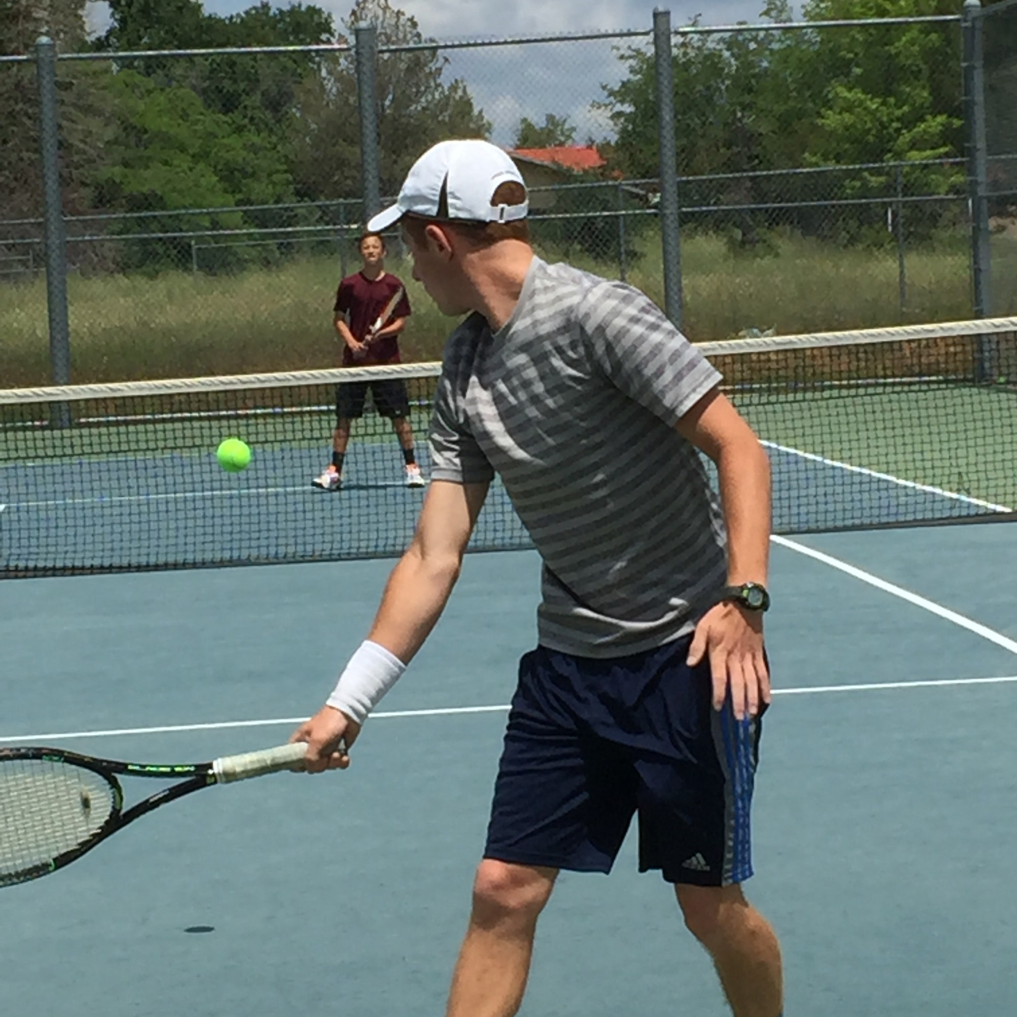 Never underestimate the power of a casual comment to a child. Tanner attended a friend’s tennis themed birthday party when he was about 10. Eli’s dad complimented Tanner’s tennis stroke noting he had natural talent and should consider tennis. Taken to heart, Tanner decided to pursue this sport. He began as so many locals have, at the 20th Street courts with longtime instructor, Jerry Brayton. He moved on to a junior membership at The Chico Racquet Club with lessons and eventually joined the travel team, playing year-round, weaving in tournaments and the high school season. During Tanner’s high school tennis career, he was fortunate to be surrounded by some serious tennis talent. Many of these boys had been playing since they could hold a racquet and several sets of brothers were part of the mix. All of these skilled players were part of the year-round team at the racquet club and all attended PV, leading to total league dominance in boys high school tennis during those years.